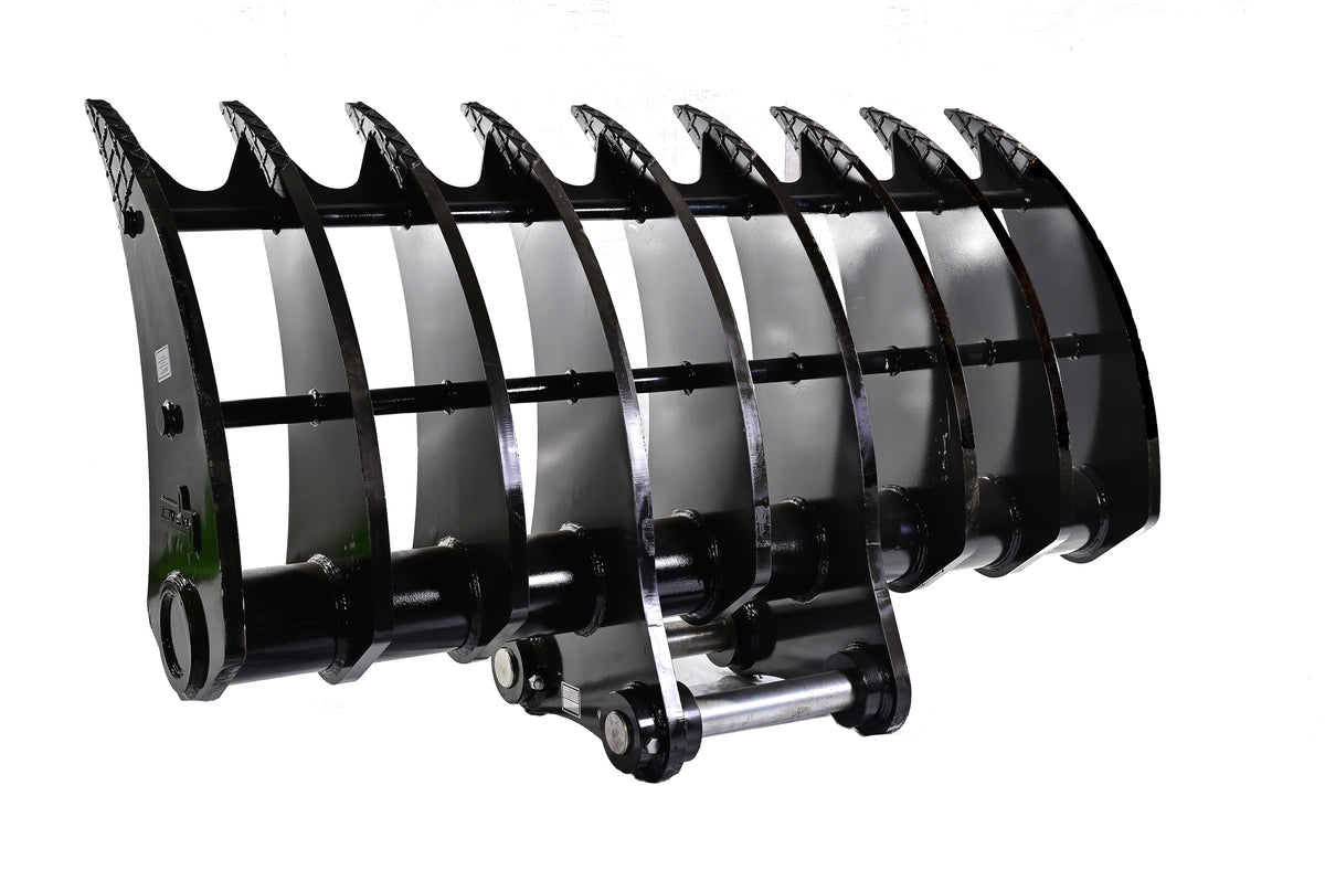 An Impact Stick Rake designed for a 30-36 ton excavator typically features durable construction with hardened steel tips for extended wear resistance. It is used for tasks such as root, clearing, and land clearing operations, allowing for efficient removal of roots, debris, and brush. The hard-faced tips help prevent wear and damage, ensuring longevity and reliable performance during demanding excavator work. These rakes are designed for easy attachment to the excavator arm and are suitable for landscaping, forestry, and land development projects.